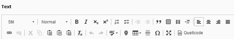 Texte können unter anderem mit Hilfe des "Real Text Editors (RTE)" eingegeben werden. Mit dessen Hilfe können Formatierungen einfach forgenommen werden. Die Erweiterung Pizpalue fügt dem Editor weitere Funktionen hinzu.