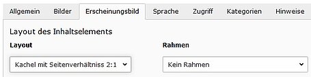 Damit die Bildausschnitte für die Kacheln schneller definiert werden können, wurde dem Bildausschnittsdialog die Seitenverhältnisse 2:1 und 1:2 hinzugefügt. Zur optimalen Bildausgabe können die Bildgrössen skaliert werden (siehe Seite Inhaltselemente-Bilder).