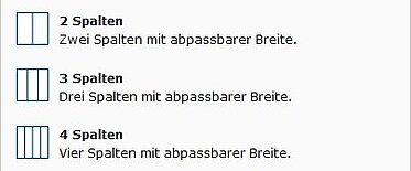 Mit Spalten kann ein Seitenbereich weiter aufgeteilt werden. Es können zwei, drei und vier Spalten in einer Reihe erstellt werden.